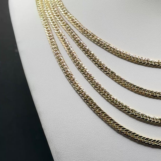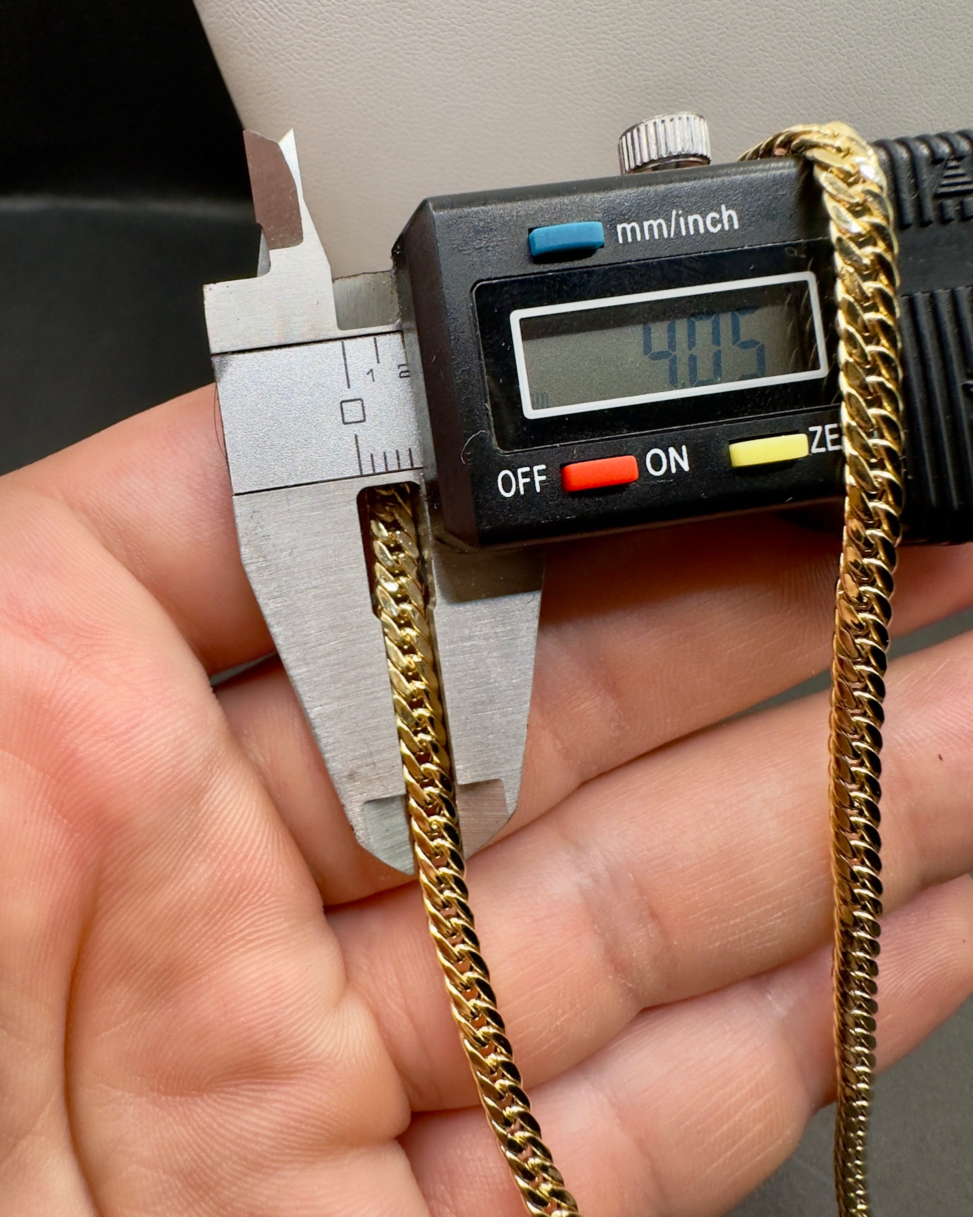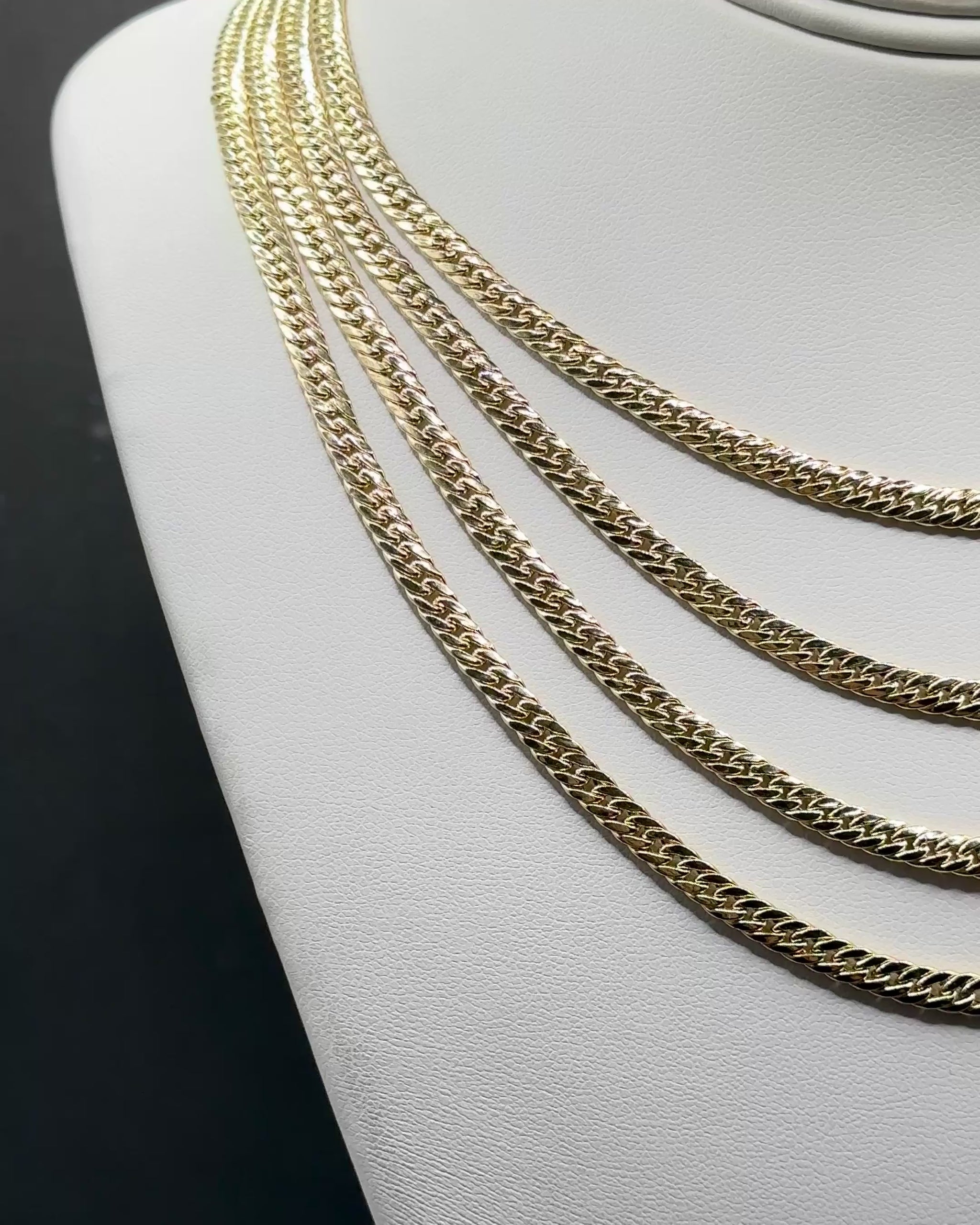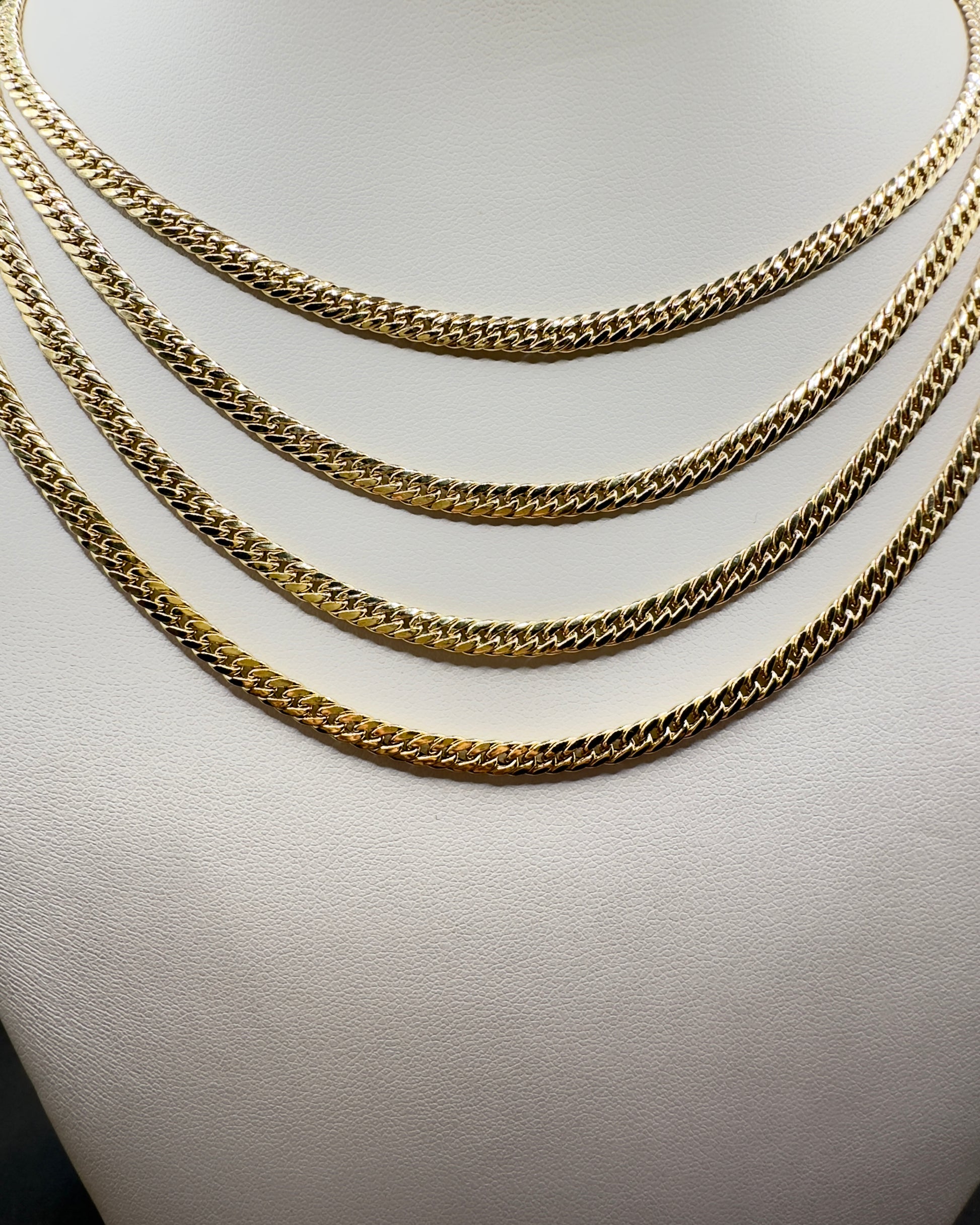 A sleek compact Cuban—also known as a tight Miami—in 14K real gold. 22 inches long with a clean 4 mm profile for bright, close-set shine and a smooth, flat drape.