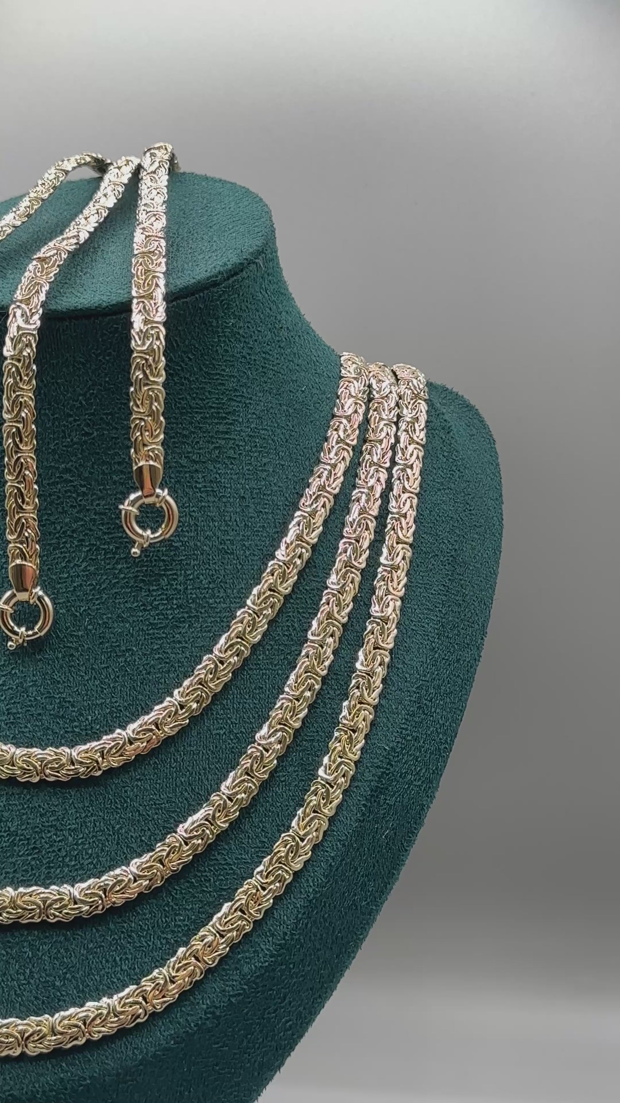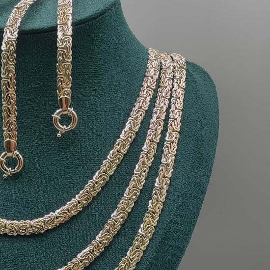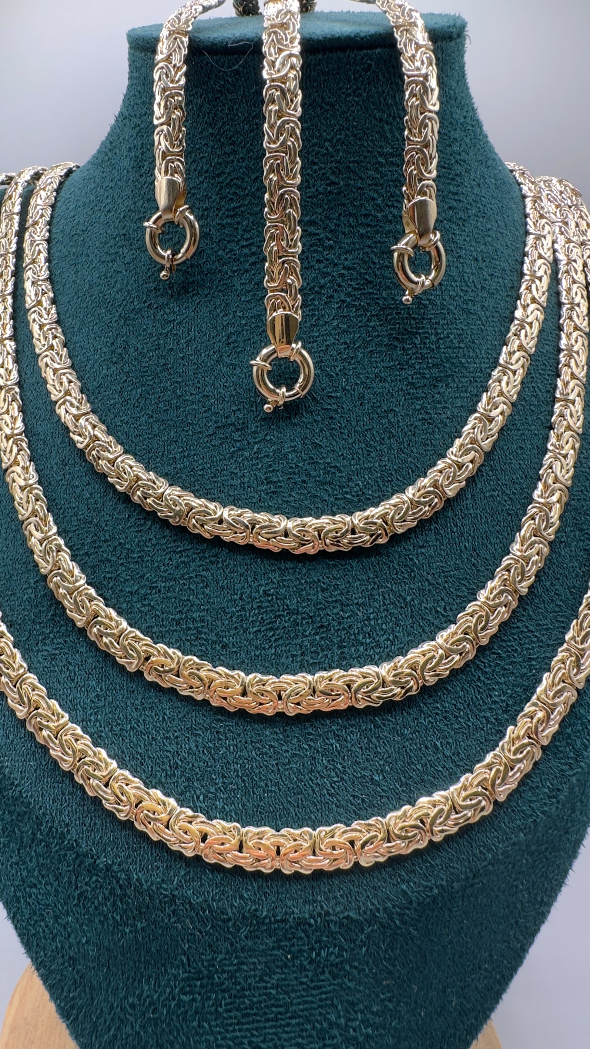14K Real Gold Necklace & Bracelet Set — Flat Woven Byzantine Link — 24" Necklace + 8" Bracelet (27.75g Total)